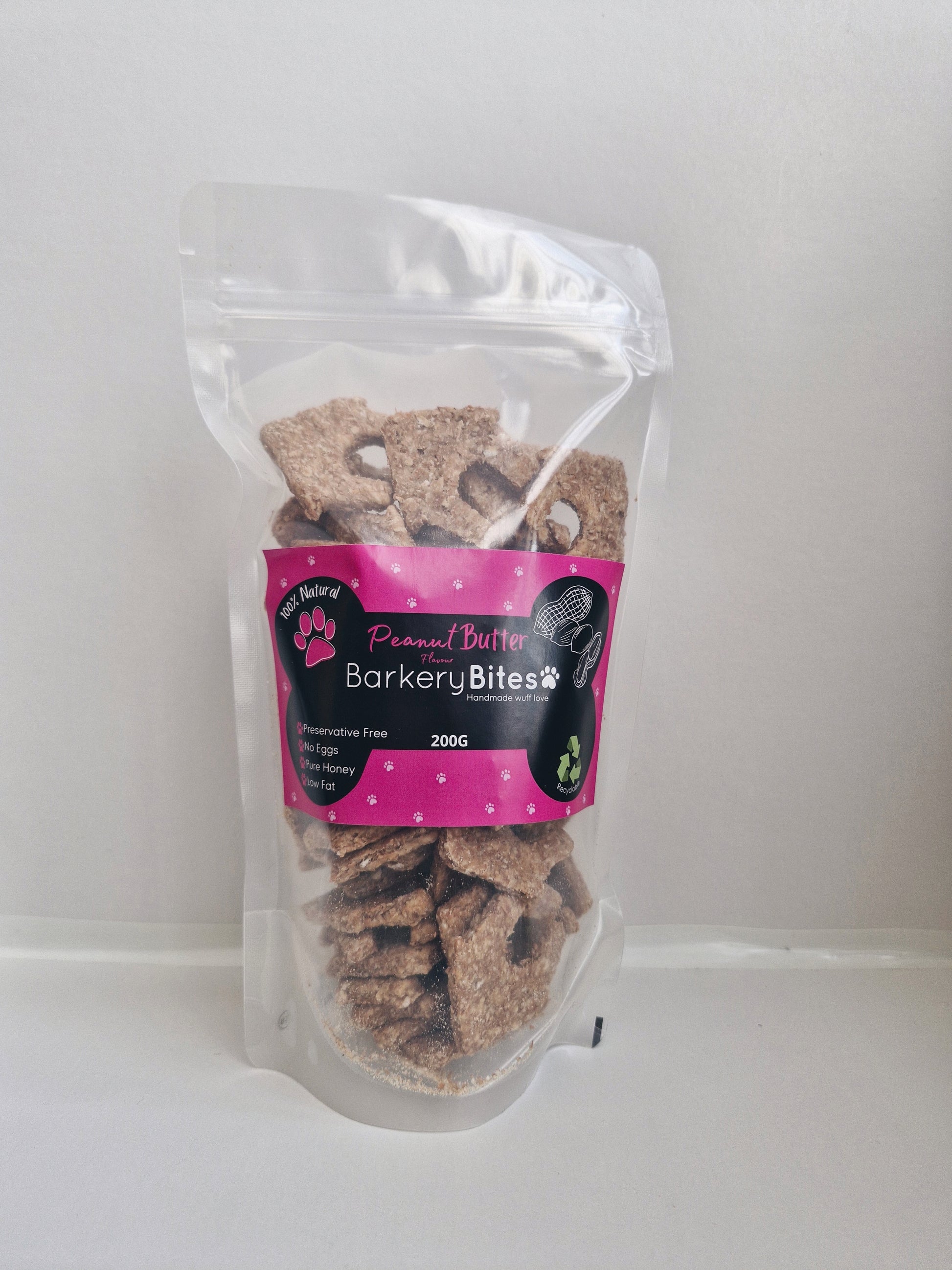Tasty, healthy and wholesome peanut butter dog treats baked wuff love.